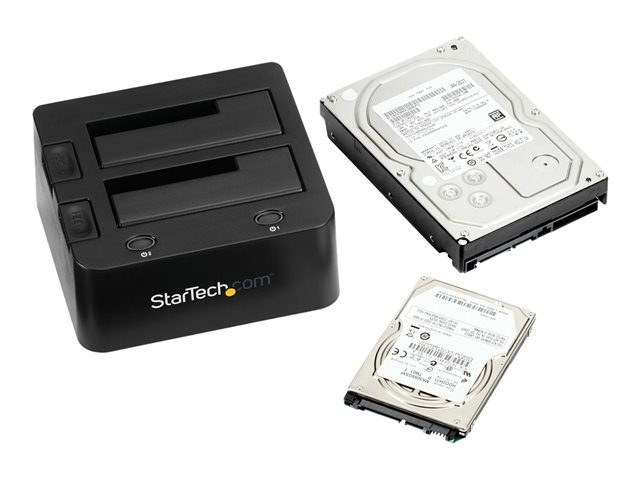 Produktbeskrivning StarTech.com Dual-Bay USB 3.0 to SATA and IDE Hard Drive Docking Station, USB Hard Drive Dock, External 2.53.5 SATA III and IDE (40 pin) SSDHDD Docking Station, Hot-Swap Hard Drive Bays - Top-Loading - kontrollerkort - ATA / SATA 6Gb/s - USB 3.0 Typ av enhet Kontrollerkort - extern Busstyp USB 3.0 Färg Svart Expansionsfack 1 x hot-swap - 2,5 tum/3,5 tum delad