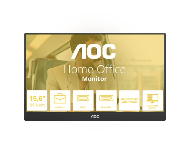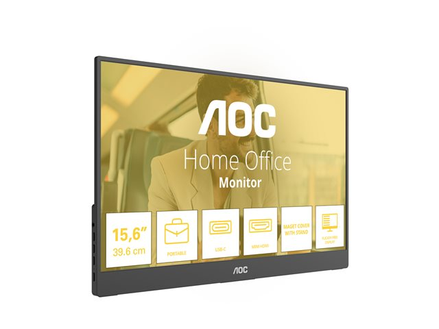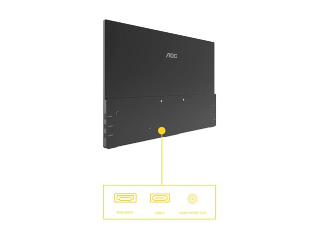 Produktbeskrivning AOC Style-line 16T20E2 - T20 Series - LED-skärm - 16" Typ av enhet LED-bakgrundsbelyst LCD-skärm - 16" URL med QR-kod för energimärke Https://eprel.ec.europa.eu/qr/2587468 Energiklass Klass B Paneltyp IPS Bildförhållande 16:9 Ursprunglig upplösning Full HD 1920 x 1080 vid 60 Hz Pixelhöjd 0.17925 mm Ljusstyrka 250 cd/m² Kontrastförhållande 1000:1 / 50000000:1 (dynamisk) Responstid 4 ms (grå-till-grå) Färgstöd 16,7 miljoner färger Inmatningsanslutningar Mini HDMI, 2xUSB-C Skärmbeläggning Bländskydd Färg Svart Dimensioner (BxDxH) - med ställ 35.6 cm x 1.5 cm x 22.6 cm Vikt 1.1 kg Tillverkarens garanti 3 års garanti - Nedladdningsbara filer