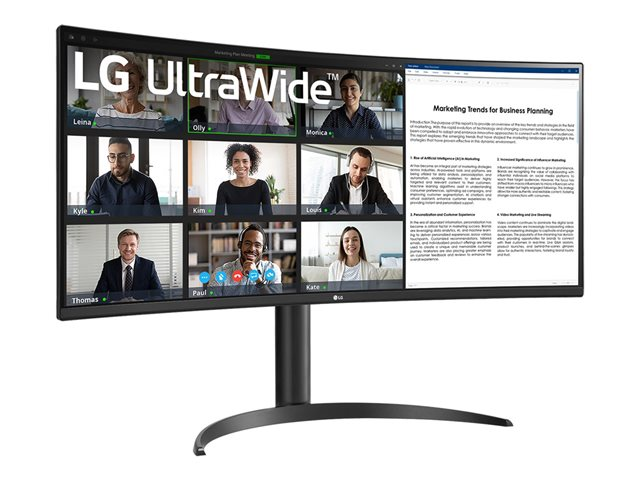 Produktbeskrivning LG UltraWide 34WR55QC-B - LED-skärm - böjd - 34" - HDR Typ av enhet LED-bakgrundsbelyst LCD-skärm - 34" Energiklass Klass F Böjd skärm Ja Adaptive-Sync-teknologi AMD FreeSync Egenskaper USB 3.0-/USB-C-hubb, USB PD 65 Watt Paneltyp VA Bildförhållande 21:9 Ursprunglig upplösning UWQHD 3440 x 1440 vid 100 Hz Pixelhöjd 0.23175 mm Ljusstyrka 300 cd/m² Kontrastförhållande 3000:1 HDR-kapabel HDR10 Responstid 5 ms (grått-till-grått snabbt) Färgskala 99% sRGB (CIE 1931) Inmatningsanslutningar 2xHDMI, DisplayPort, USB-C Displaylägesjusteringar Lutning, höjd Spänning AC 100-240 V (50/60 Hz) Dimensioner (BxDxH) - med ställ 80.9 cm x 26 cm x 45.83 cm Vikt 6.9 kg Standarder som följs UL/cUL, ERP, FCC Klass B-certifierade - Nedladdningsbara filer