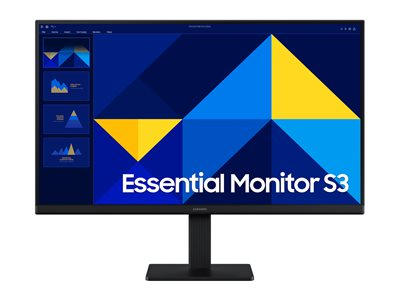 Produktbeskrivning Samsung Essential S3 S24D302GAU - S30GD Series - LED-skärm - Full HD (1080p) - 24" Typ av enhet LED-bakgrundsbelyst LCD-skärm - 24" URL med QR-kod för energimärke Https://eprel.ec.europa.eu/qr/2109457 Energiklass Klass E Energikonsumtion per år 22 kWh Paneltyp IPS Bildförhållande 16:9 Ursprunglig upplösning Full HD (1080p) 1920 x 1080 vid 100 Hz Pixelhöjd 0.2767 mm Ljusstyrka 250 cd/m² Kontrastförhållande 1000:1 Responstid 5 ms (grå-till-grå) Färgstöd 16,7 miljoner färger Färgskala 72% NTSC (CIE 1931) Inmatningsanslutningar HDMI, VGA Displaylägesjusteringar Lutning Spänning AC 100-240 V Färg Svart Dimensioner (BxDxH) - med ställ 54.07 cm x 17.51 cm x 42.85 cm Vikt 2.4 kg - Nedladdningsbara filer