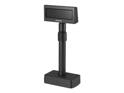 Produktbeskrivning BIXOLON BCD-2000 - kunddisplay Typ av enhet Kunddisplay Formfaktor Bord/stång Teckenupplösning 4 rader x 30 tecken Ljusstyrka 100 cd/m² Kommandouppsättning ESC/POS, UTC, CD5220, UTC Enhance, PD6000 Inmatningsanslutningar USB Displaylägesjusteringar Höjd, pivot (rotation), lutning Färg Mörkgrå Dimensioner (BxDxH) - med stativ (högsta position) 16.25 cm x 9.76 cm x 52.1 cm Vikt 850 g Standarder som följs Plug and Play - Nedladdningsbara filer