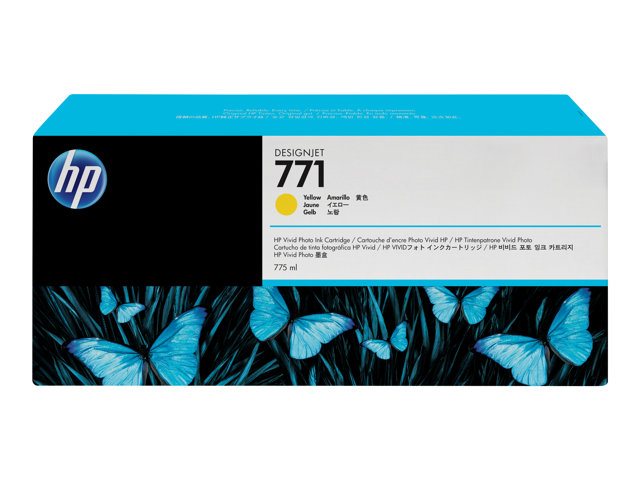 Produktbeskrivning HP 771 - gul - original - bläckpatron Typ av produkt Bläckpatron Utskriftsteknik Bläckstråle Utskriftsfärg Gul Kapacitet 775 ml Kompatibel med DesignJet Z6200, Z6600 Production Printer, Z6800 Photo Production - Nedladdningsbara filer