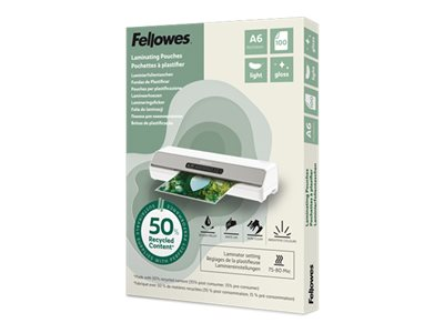 Produktbeskrivning Fellowes - 100-pack - glättat - lamineringsfickor Typ av produkt Lamineringsfickor Utskriftsfärg Glättat Medföljande antal 100-pack Återvunnet förpackningsinnehåll 50 % - Nedladdningsbara filer