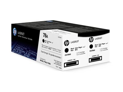 Produktbeskrivning HP 78A - 2-pack - svart - original - LaserJet - tonerkassett (CE278AD) Typ av produkt Tonerkassett Utskriftsteknik Laser HP-submärke LaserJet Utskriftsfärg Svart Egenskaper för tonerkassett HP Smart Printing Avkastning Upp till 2100 sidor ISO/IEC 19752 Medföljande antal 2-pack Kompatibel med LaserJet Pro M1536dnf, P1566, P1606DN - Nedladdningsbara filer