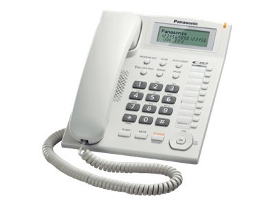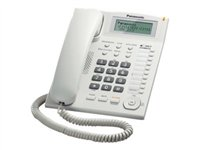 Produktbeskrivning Panasonic KX-TS880FXW - fast telefon med nummerpresentation Typ av produkt Fast telefon med nummerpresentation Högtalartelefon Ja Nummerpresentation Ja Samtalstjänster Nummerpresentation Automatisk återuppringning Ja Snabbvalskapacitet 20 Bildskärm LCD-skärm - monokrom Färg Vit - Nedladdningsbara filer