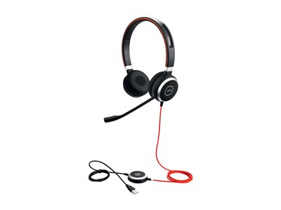Produktbeskrivning Jabra Evolve 40 UC stereo - headset - 3,5 mm kontakt Typ av produkt Headset - kabelansluten - 3,5 mm kontakt Rekommenderad användning Bärbar elektronik, dator - kommunikation Hörlursmodell På örat Anslutningsteknik Kabelansluten Ljudutgångsläge Stereo Ljudeffekter PureSound Ljudspecifikationer Frekvensrespons 20 - 20000 Hz - Sensitivitet 93.6 dB Impedans 32 ohm Max. inmatningsström 10 mW Mikrofon Bom Kontroller Stänga av ljud, volym, svara/avsluta Tillverkarens garanti 2 års garanti - Tillbehör