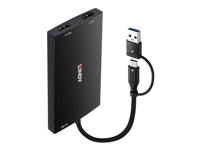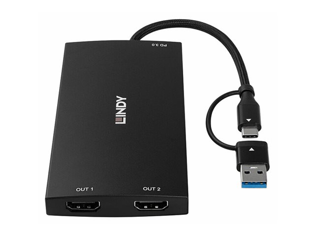 Produktbeskrivning Lindy adapterkabel - HDMI / USB - 11 cm Kabel Adapterkabel - HDMI / USB Max effektupplösning 3840 x 2160 - 60 Hz Kabellängd 11 cm Färg Svart Kontakter 2 x HDMI - hona Kontakt (andra änden) 2 x HDMI - hona Standarder som följs USB 3.2 Gen 1 Egenskaper 4K60Hz (3840 x 2160) stöd, USB Power Delivery 3.0 (100W) Tillverkarens garanti 2 års garanti - Nedladdningsbara filer