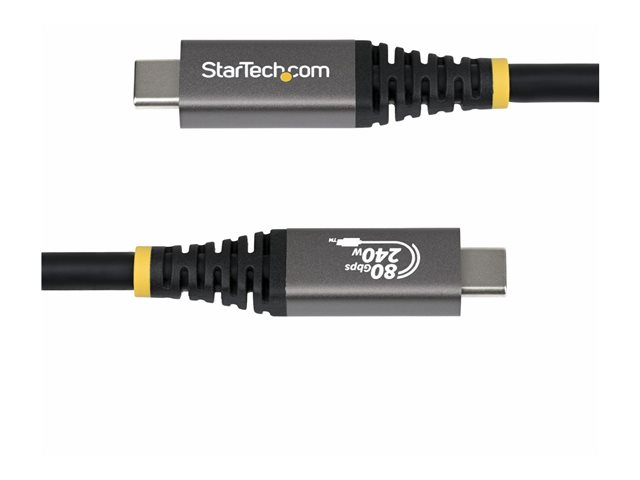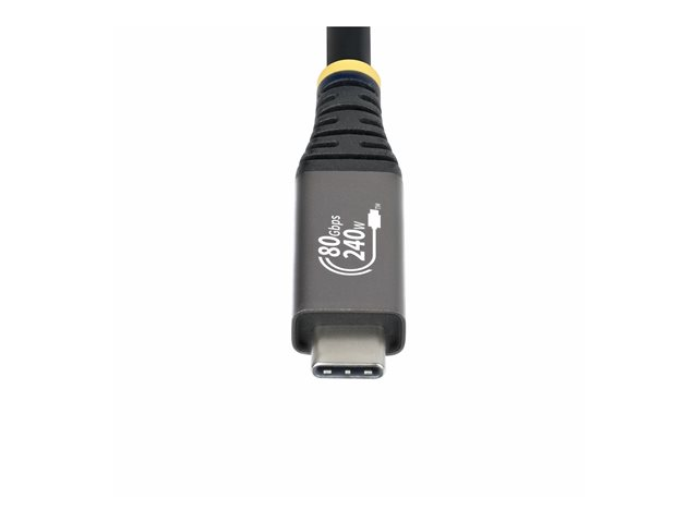 Produktbeskrivning StarTech.com - USB typ C-kabel - 24 pin USB-C till 24 pin USB-C - 50 cm Typ USB typ C-kabel Teknik Koaxial Egenskaper 4K120Hz stöd, 8K60Hz stöd, utökat effektområde (EPR), Stöd för Power Delivery 3,1, EMI-skydd, e-markörchip, HDR-stöd, 32 ljudkanaler, High Bit Rate 3 (HBR3), 80 Gb datahastighet, Display Stream Compression (DSC), upp till 240 W strömleverans, stöd för DisplayPort alt-läge 2,1, HDR10-stöd, HDR10+ stöd Kabellängd 50 cm Kontaktdon 24 pin USB-C - hane Kontakt (andra änden) 24 pin USB-C - hane Standarder som följs USB4 / Thunderbolt / DisplayPort 2.1 Färg Svart - Tillbehör