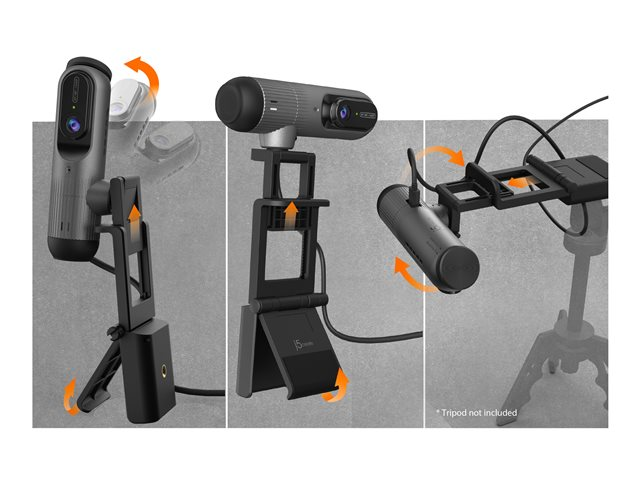 Produktbeskrivning j5create JVU302 - webbkamera - TAA-kompatibel Typ av enhet Webbkamera Ljud Ja: inbyggd mikrofon Kameramonteringstyp Klämskon för montering Dimensioner (BxDxH) 12.6 cm x 3.55 cm x 4.15 cm Vikt 255 g Färg Svart Anslutningsteknik Kabelanslutning Kamera Färg Max upplösning 2560 x 1440 Bildhastighet (max) 60 frames per second Videoformat 2K, 1440p, 1080p, 720p, 640p, 480p, 360p Bildsensortyp CMOS - 1/2.7" - 5 MP Fokuseringsjustering Automatisk, manuell Gränssnitt USB 2.0 / USB-C Medföljande kablar 1 - USB-C till USB-C-kabel med USB-A-adapter - extern - 1.8 m Spänning DC 5 V Egenskaper AI-spårning, auto framing, Auto Framing Gen 2, 1.5 m microphone pick up range, 9:16 corridor mode, dokumentkamerafunktion, Facebook Messenger-kompatibelt, LED-indikator, kompatibel med Microsoft teams, privacy cover, kompatibel med Zoom, elektronisk slutare, USB ljudklass (UAC 1.0), USB videoklass (UVC 1.1), 87.6° field of view, ljudavstängningreglage till mikrofon, ABS housing, 180° rotation TAA-kompatibel Ja Tillverkarens garanti 1 års garanti Miljöparametrar (vid drift) 0 °C - 40 °C; upp till 90 % (icke-kondenserande) relativ luftfuktighet - Nedladdningsbara filer