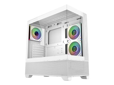 1 x hörlur/mikrofonModerkort som stöds microATX, Mini-ITX, ATX Egenskaper hos systemkabinett Främre träpanel, nätöverdel, nätbotten, ARGB-fläktar, 270-graders panoramaglasdisplay Nätdel Ingen strömförsörjning (ATX) Dimensioner (BxDxH) 21.8 cm x 43.4 cm x 45.4 cm Vikt 6.3 kg Tillverkarens garanti 2 års garanti - Nedladdningsbara filer