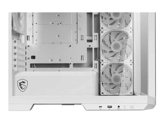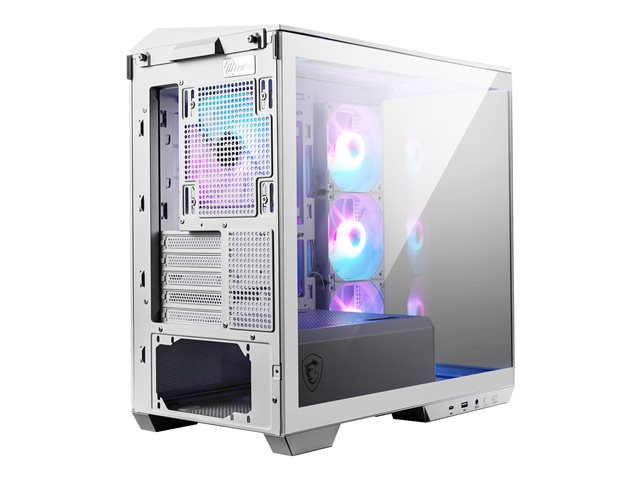 Produktbeskrivning MSI MAG PANO M100R PZ - microATX-torn Typ av produkt Systemskåp Formfaktor microATX-torn Sidopanel med fönster Ja, härdat glas Färg Vit I/O-kontakter 1 x USB 3.2 Gen 1