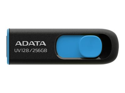 Produktbeskrivning ADATA UV128 - USB flash-enhet - 256 GB Produkttyp USB flash-enhet Gränssnittstyp USB 3.2 Gen 1 Minneskapacitet 256 GB Färg Svart, blå Operativsystem erfordras Apple MacOS X 10.6 eller senare, Linux 2.6 eller senare, Microsoft Windows XP / Vista / 7 / 8 / 10 Tillverkarens garanti 5 års garanti - Nedladdningsbara filer