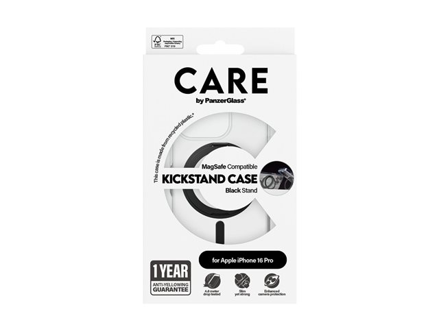 Produktbeskrivning CARE by PanzerGlass - baksidesskydd för mobiltelefon Typ av produkt Baksidesskydd för mobiltelefon - MagSafe-kompatibilitet Material Återvunnen plast Färg Transparent, svart Återvunnet produktinnehåll 100 % - tillverkad av återvunnen plast Tillverkarens garanti 1 års garanti Designat för Apple iPhone 16 Pro - Tillbehör