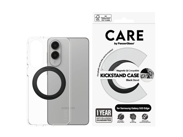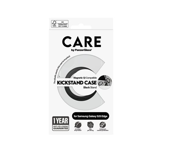 Produktbeskrivning CARE by PanzerGlass - baksidesskydd för mobiltelefon Typ av produkt Baksidesskydd för mobiltelefon Material Plast Färg Transparent, svart Återvunnet produktinnehåll 100 % - tillverkad av återvunnen plast Tillverkarens garanti 1 års garanti Designat för Samsung Galaxy S25 Edge - Nedladdningsbara filer