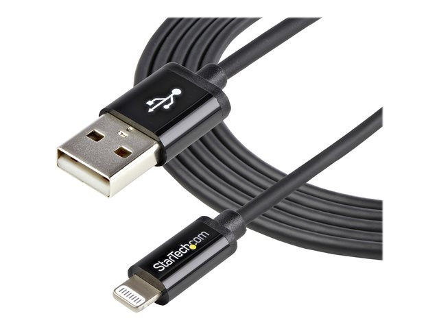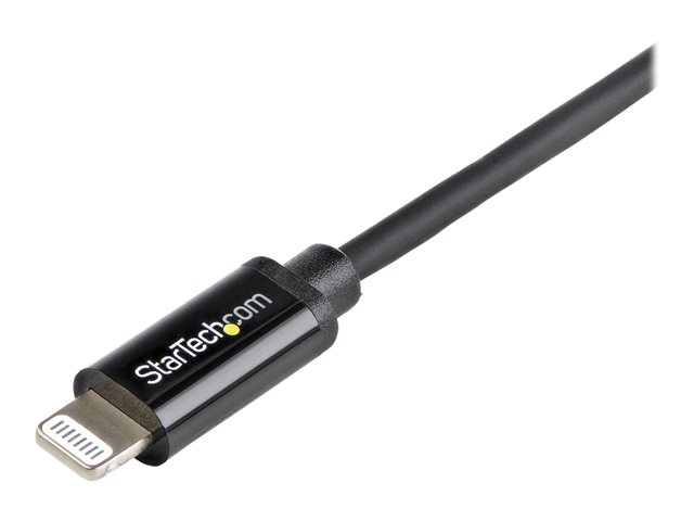 Produktbeskrivning StarTech.com 2 m USB till Lightning-kabel - Lång iPhone/iPad/iPod-laddningskabel - Lightning till USB-kabel - Apple MFi-certifierad - Svart - Lightning-kabel - Lightning / USB - 2 m Kabel Lightning-kabel - Lightning / USB Teknik Dubbelt skärmad American Wire Gauge (AWG) 22/28 Kabellängd 2 m Färg Svart Kontaktdon Lightning - hane Kontakt (andra änden) USB - hane Egenskaper Synkronisering och laddning Tillverkarens garanti 2 års garanti Designat för P/N: ST4200MINI2, ST4200MINIC - Nedladdningsbara filer