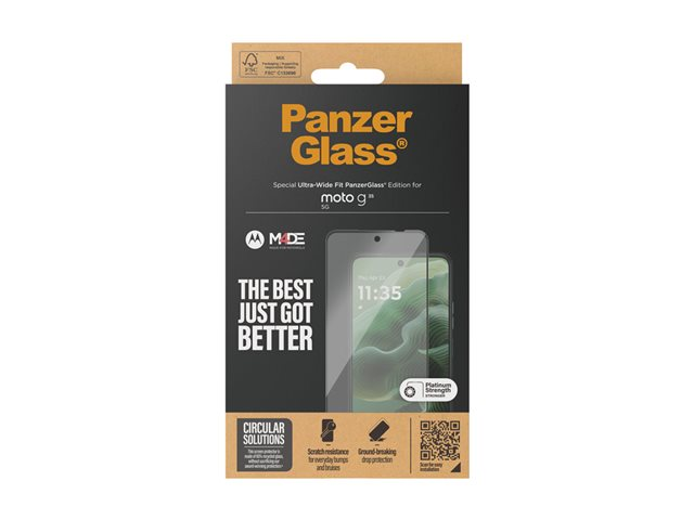 Produktbeskrivning PanzerGlass - skärmskydd för mobiltelefon - ultrabred passning Typ av produkt Skärmskydd - glas Avsedd för Mobiltelefon Skydd Reptålig, kladdsäker, fettsäker, vattenavstötande, smutsavstötande, droppskydd, stötsäkert, klåfingerskydd, motstår fingeravtryck, oljeavvisande Beläggning Oleofob Produktmaterial Härdat glas, PET (Polyethylene Terephthalate) Dimensioner (BxDxH) 7.222 cm Längd 16.16 cm Grovlek 0.67 mm Vikt 19 g Ramfärg Svart Designat för Motorola Moto G35 - Nedladdningsbara filer