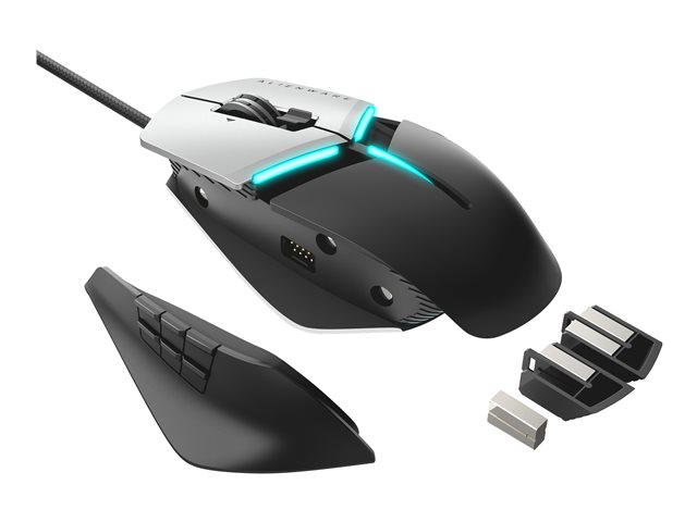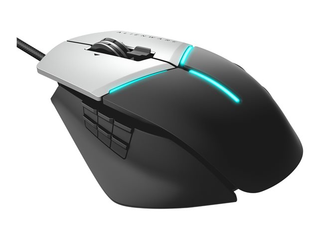 Produktbeskrivning Alienware Elite Gaming Mouse AW958 - mus - USB - svart, silver Typ av enhet Mus Anslutningsteknik Kabelansluten - USB Färg Svart, silver Dimensioner (BxDxH) 9.6 cm x 4.04 cm x 13 cm Vikt 197 g Teknik för rörelsedetektering Optisk Antal knappar 13 Rörelseupplösning 12000 dpi Prestanda 50 G maximal acceleration, 250 tum per sekund Egenskaper On-the-fly DPI-omkoppling, flätad kabel, 13 programmerbara tangenter, 16,8 miljoner mångfärgad belysning, 1 000 Hz avfrågningshastighet, Omron-teknologi, mekaniska nycklar, Pixart PMW 3360 optisk spelsensor, justerbart handledsstöd Kabellängd 1.8 m Operativsystem erfordras Windows 10 Designat för Alienware 17 R5, Area-51 R3, Area-51 R4, Area-51 R5, Area-51 R6, Area-51 R7, Area-51m, Aurora R7; Inspiron 5490 AIO, 7790 AIO; XPS 8930 - Nedladdningsbara filer