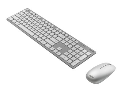 Produktbeskrivning ASUS W5000 - sats med tangentbord och mus - 100% - QWERTZ - tysk - vit Inmatningsenhet Typ av enhet Sats med tangentbord och mus Gränssnitt 2.4 GHz Trådlös mottagare Trådlös USB-mottagare Anslutningsteknik Trådlös Lokalisering och layout QWERTZ tysk Snabbtangentsfunktion Windows-genvägar Numeriskt tangentbord Ja Pekenhet Mus - trådlös - optisk Prestanda Realtidssensitivitetsomkoppling 800/1200/1600 dpi Färg Vit - Nedladdningsbara filer
