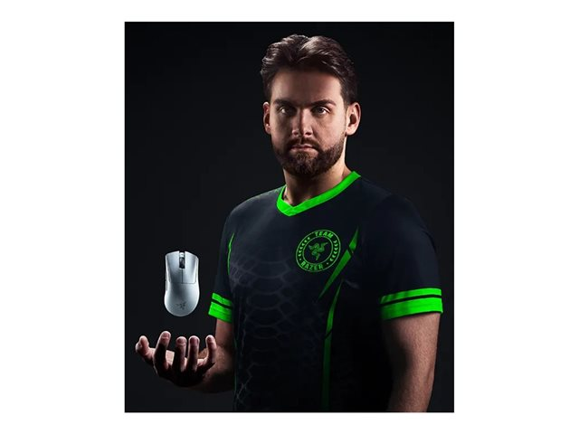 Produktbeskrivning Razer DeathAdder V4 Pro - mus - USB - vit Typ av enhet Mus - ergonomisk Anslutningsteknik Trådlös, kabelansluten - USB Färg Vit Inriktning Högerhänt Dimensioner (BxDxH) 6.8 cm x 12.8 cm x 4.4 cm Vikt 57 g Teknik för rörelsedetektering Optisk Antal knappar 6 Rörelseupplösning 45000 dpi Gaming Ja Egenskaper Razer HyperPolling-teknologi, Razer Focus Pro Gen 2 optisk sensor, 100 miljoner klick Tillverkarens garanti 2 års garanti - Nedladdningsbara filer