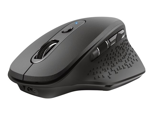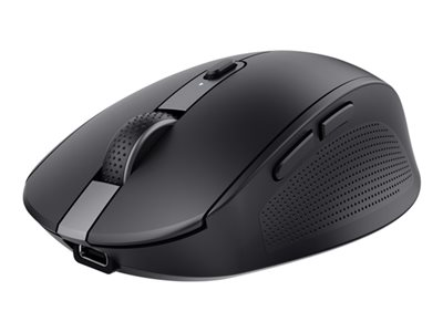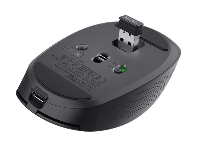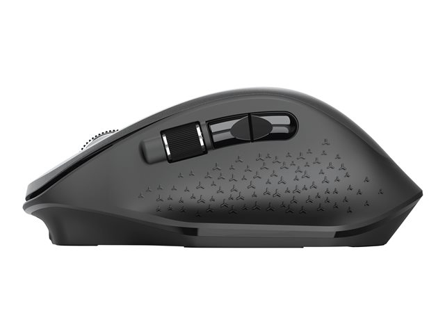 Produktbeskrivning Trust Ozaa - mus - flera enheter - 2.4 GHz, Bluetooth - svart Typ av enhet Mus Anslutningsteknik Trådlös - 2.4 GHz, Bluetooth Färg Svart Inriktning Högerhänt Dimensioner (BxDxH) 6.4 cm x 10.5 cm x 3.7 cm Vikt 69 g Trådlös mottagare Mikro trådlös USB-mottagare Teknik för rörelsedetektering Optisk Antal knappar 6 Rörelseupplösning 3200 dpi Prestanda Sensitivitetsomkoppling i realtid 800/1600/3200 dpi Egenskaper Scrollhjul, horisontal rullning, klotång, på-/avströmbrytare, programmerbara knappar, batteriindikering, DPI-nivåindikator, handhållen Operativsystem erfordras Microsoft Windows 10 / 11, Apple macOS 11 / 12 / 13, Google Chrome OS Återvunnet produktinnehåll 60 % - tillverkad av återvunnen ABS-plast Tillverkarens garanti 2 års garanti - Nedladdningsbara filer