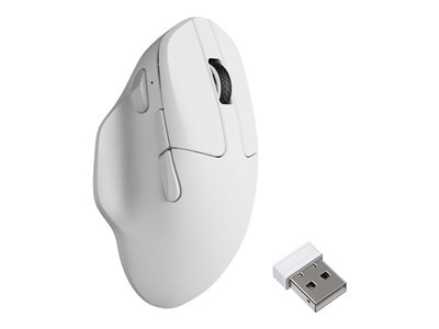 Produktbeskrivning Keychron M7 - vertikal mus - 2.4 GHz, Bluetooth 5.3, USB-C - vit Typ av enhet Vertikal mus - ergonomisk Anslutningsteknik Trådlös, kabelansluten - 2.4 GHz, Bluetooth 5.3, USB-C Färg Vit Dimensioner (BxDxH) 7.71 cm x 12.77 cm x 4.05 cm Vikt 66 g Teknik för rörelsedetektering Optisk Rörelseupplösning 30000 dpi Prestanda 50 G maximal acceleration, 80 miljoner klick, realtime sensitivity switching 100 - 30000 dpi, 750 ips spårningshastighet, avfrågningshastighet: 8000 Hz Egenskaper PixArt 3950 sensor, Motion Sync, vinkelsnapping, Huano mikrobrytare, teflon / PTFE musfötter, sensor för spårning på glas, ultralätt vikt, ultra-flex paracord-kabel, DPI-omkopplare, avläsningsfrekvens knapp Operativsystem erfordras Apple MacOS, Microsoft Windows, Linux Tillverkarens garanti 1 års garanti - Nedladdningsbara filer