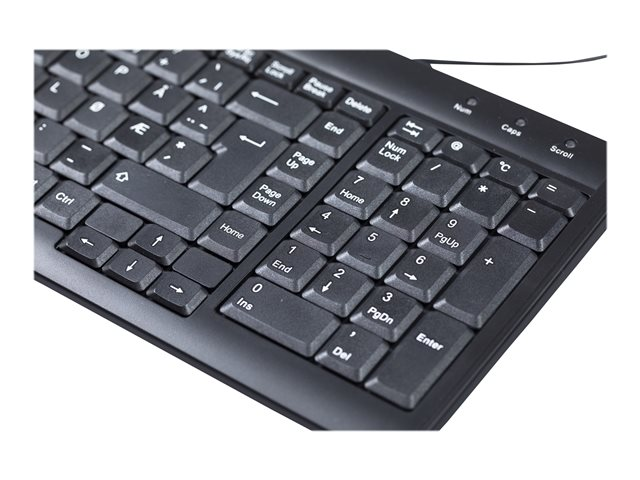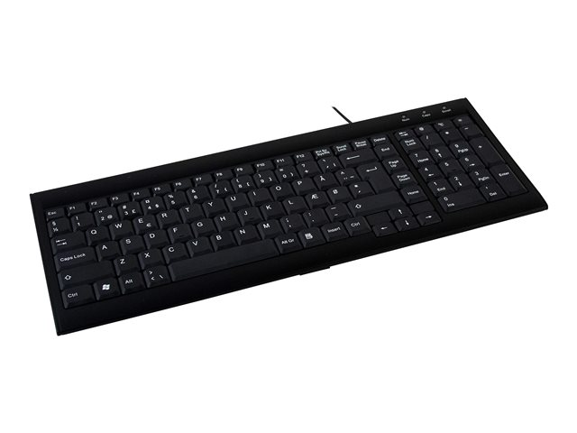 Produktbeskrivning Kenson SpaceSaver - tangentbord - dansk - svart Inmatningsenhet Typ av enhet Tangentbord Gränssnitt USB Anslutningsteknik Kabelansluten Lokalisering och layout Dansk Färg Svart Dimensioner (BxDxH) 43 cm x 19 cm x 3 cm Vikt 471 g Tillverkarens garanti 2 års garanti - Nedladdningsbara filer