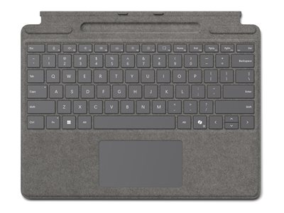 Produktbeskrivning Microsoft Surface Pro Keyboard for Business - tangentbord - med pennförvaring - med accelerometer, pekplatta, Förvaring och laddningsfat för Surface Slim Pen - AZERTY - fransk - platina - med Slim Pen Inmatningsenhet Typ av enhet Tangentbord Bakgrundsbelyst Ja Inbyggda enheter Accelerometer, pekplatta, Förvaring och laddningsfat för Surface Slim Pen Lokalisering och layout AZERTY fransk Snabbtangentsfunktion Copilot, mikrofondämpning, klipp ut skärm, Windows-genvägar, ljusstyrka, multimedia Färg Platina Dimensioner (BxDxH) 28.91 cm x 22.61 cm x 0.489 cm Vikt 281 g Tillverkarens garanti 1 års garanti Kombinerad med Slim Pen Designat för Surface Pro 10 for Business, Pro 8 for Business, Pro 9 for Business, Pro X for Business - Nedladdningsbara filer