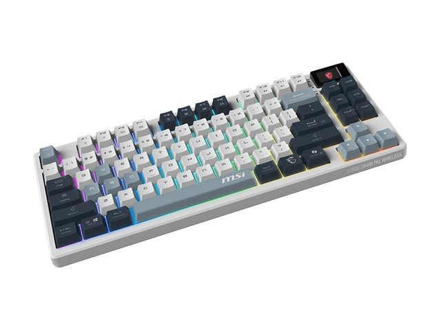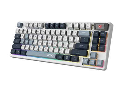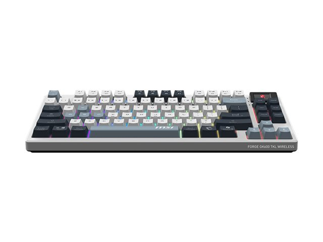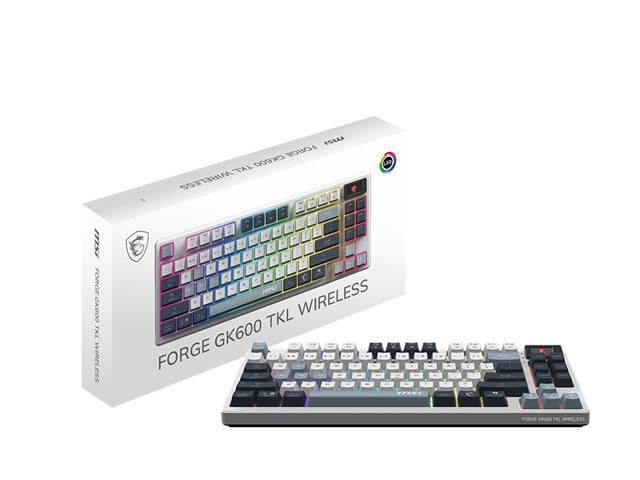 Produktbeskrivning MSI FORGE GK600 - tangentbord - hotswap TKL - QWERTY - amerikansk Inmatningsenhet Typ av enhet Tangentbord Bakgrundsbelyst RGB Gränssnitt Bluetooth, USB, 2.4 GHz Anslutningsteknik Trådlös, kabelansluten Lokalisering och layout QWERTY amerikansk Antal tangenter 83 Snabbtangentsfunktion Multimedia Dimensioner (BxDxH) 34.8 cm x 14 cm x 4.5 cm Vikt 943 g - Nedladdningsbara filer