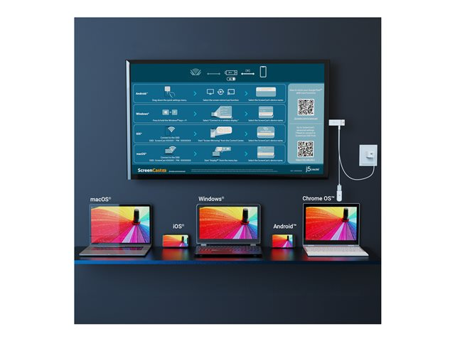 Produktbeskrivning j5create ScreenCast 4K JVAW76MAX - trådlös ljud-/videoförlängare - HDMI Typ av enhet Trådlös ljud-/videoförlängare Formfaktor Extern Frekvensband 5 GHz Datalänkprotokoll HDMI Max överföringsavstånd 15 m Systemkrav Microsoft Windows, Apple MacOS, Apple iOS, Google Chrome OS, Android Dimensioner (BxDxH) 3.2 cm x 1.1 cm x 9.5 cm Vikt 79.5 g Tillverkarens garanti 1 års garanti - Nedladdningsbara filer