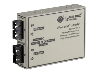 Produktbeskrivning Black Box FlexPoint - medieomvandlare - 1GbE Typ av enhet Medieomvandlare - SC-läge (multi-mode) / SC enkelläge Formfaktor Extern Typ av kablage 1000Base-LX, 1000Base-SX Dataöverföringshastighet 1 Gbps Optisk våglängd 850 nm / 1300 nm Datalänkprotokoll 1GbE Max överföringsavstånd 5 km Dimensioner (BxDxH) 7.6 cm x 10.2 cm x 2.5 cm Vikt 0.2 kg Tillverkarens garanti 1 års garanti Designat för FlexPoint Power Chassis - Tillbehör