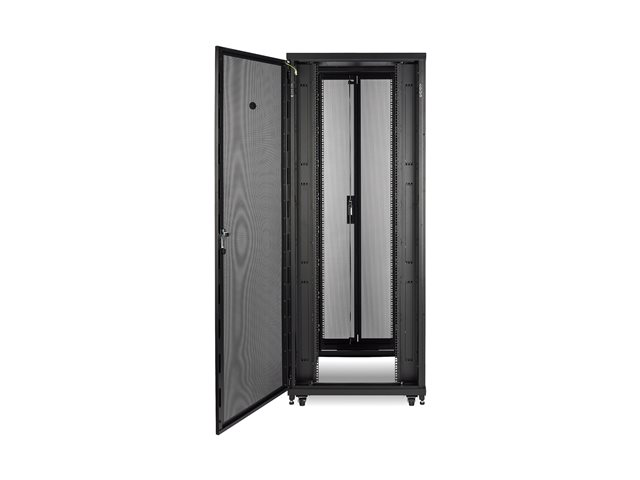 Produktbeskrivning APC NetShelter SV - rack - 42U Produkttyp Rack Racktyp Skåp Förpackningens innehåll Rackutjämningsfötter, 4 nedhållningskonsoler, sidopaneler, framlucka, bakdörr, tak, byggnadsmaskinvara Färg Svart Stativstorlek 19" Höjd (U-format) 42U Dimensioner (BxDxH) 80 cm x 106 cm x 205.7 cm Vikt 130.5 kg Egenskaper Låsbar främre dörr, låsbar bakre dörr, samma nyckel, låsbar sidopanel, hjul Tillverkarens garanti 5 års garanti Designat för P/N: SMT2200I2U-BR, SMT2200RM2UNC, SMT3000RM2UNC, SMT750RM2UC, SMTL1500RM3UC, SMTL1500RMI3UC, SMX2KRMLVNCUS, SRT1000XLA, SRT1500XLA, SRT2200RMXLA, SRT2200RMXLA-NC, SRT2200RMXLAUS, SRT2200XLA, SRT3000RMXLA, SRT3000RMXLA-NC, SRT3000RMXLT-NC, SRT3000XLA, SRT3000XLAUS, SRTL3KRM1UC, SRTL3KRM1UNC - Tillbehör