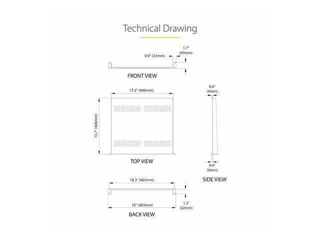Produktbeskrivning StarTech.com 2-Pack 1U Server Rack Shelf, Vented, 44lb Capacity, 16" Deep (CABSHELF116V2PK) - hylla för rack - 1U Produkttyp Hylla för rack Förpackad kvantitet 2 (specificationerna gällerenskild post) Förpackningens innehåll 8 x M6-hylsmuttrar, 8 M6 brickor av plast, 8 x M6 skruvar Färg Svart Stativstorlek 19" Höjd (U-format) 1U Produktmaterial SPCC kallvalsat stål Dimensioner (BxDxH) 48.3 cm x 40 cm x 4.3 cm Vikt 3.1 kg Egenskaper Ventilerad Tillverkarens garanti Begränsad livstidsgaranti - Tillbehör