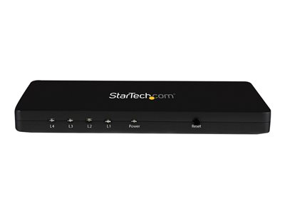 Produktbeskrivning StarTech.com 4K HDMI-video-splitter med 4 portar – 1x4 HDMI-splitter med hölje i solitt aluminium – 4K @ 30 Hz - video-/ljudomkopplare - 4 portar Typ av enhet Video-/ljudomkopplare - 4 portar Undertyp HDMI Portar 4 x HDMI Strömtillförsel AC 120/230 V Dimensioner (BxDxH) 8.5 cm x 13.9 cm x 1.4 cm Vikt 285 g Färg Svart Tillverkarens garanti 2 års garanti Designat för P/N: ST121HDBT20L, ST121HDBT20S, ST121HDBTE, SVA5H2NEUA - Tillbehör