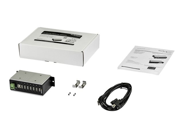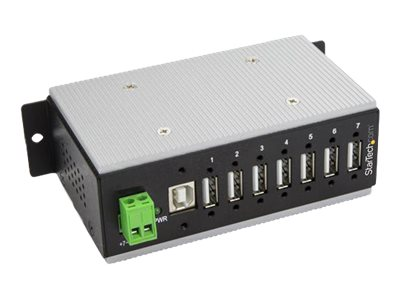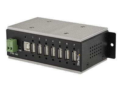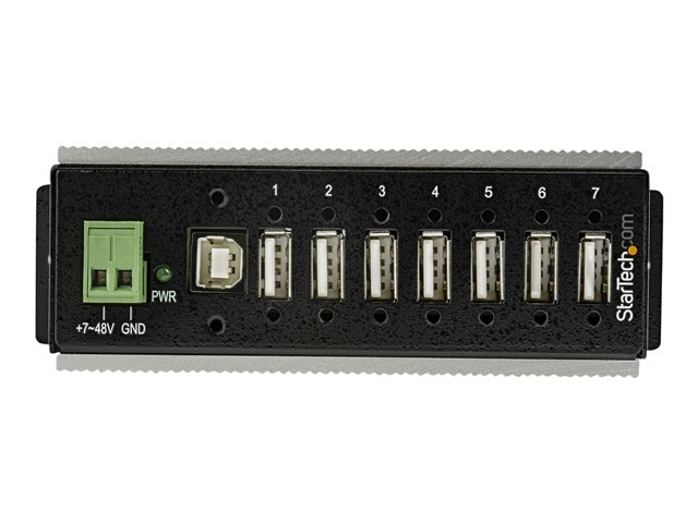 Industriell USB-A-hubb i metall med ESD- och 350 W överspänningsskydd - Utökad driftstemperatur -40 till 85 °C - monterbar på DIN-skena/vägg/skrivbord - USB-expansionshubb - hubb - 7 portar - TAA-kompatibel