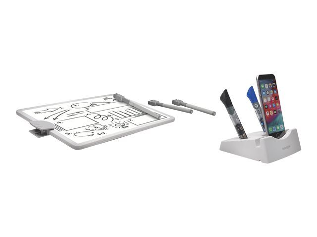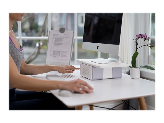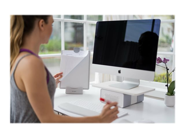 Produktbeskrivning Kensington OfficeAssist Multi-Function - hållare för kopior Produkttyp Hållare för kopior Färg Vit Produktmaterial HIPS (High Impact Polystyrene), stainless steel Dimensioner (BxDxH) 32.2 cm x 12.6 cm x 28.6 cm Vikt 815 g Egenskaper Upp till 50 ark säkerhetsklipp, stående/liggande läge, maxbelastning 3 kg, vikben, integrerad magnetisk whiteboard, smartphonehållare, integrerad kabelhantering, pennhållare, VESA-gränssnittsstöd Tillverkarens garanti 2 års garanti - Nedladdningsbara filer
