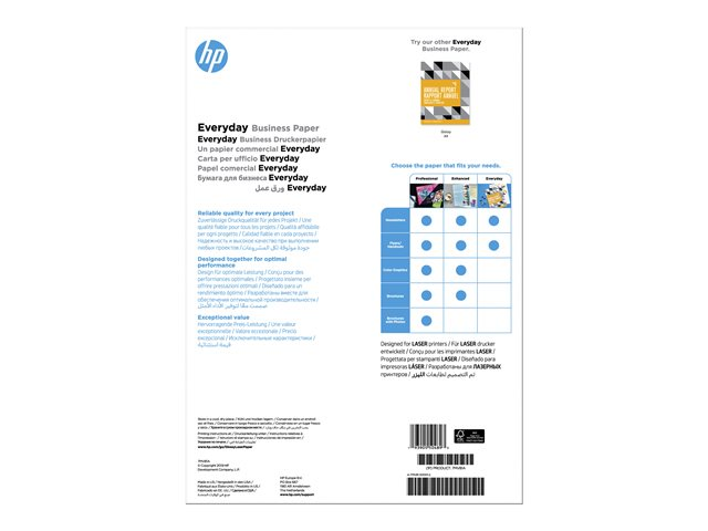 Produktbeskrivning HP Everyday - fotopapper - blank - 150 ark - A3 - 120 g/m² Typ av produkt Fotopapper Ytbeläggning Blank Mediastorlek A3 (297 x 420 mm) Utskriftsteknik Laser Medievikt 120 g/m² Medföljande antal 150 ark Tillverkarens garanti 1 års garanti Kompatibel med Laser MFP 13X; LaserJet MFP M42625, MFP M438, MFP M442, MFP M443; LaserJet Enterprise M610, M611, M612, MFP M634, MFP M635, MFP M636; LaserJet Enterprise Flow MFP M634, MFP M635, MFP M636; LaserJet Managed Flow MFP E87660; Neverstop 1001, 1202; Neverstop Laser 1000, MFP 12XX - Nedladdningsbara filer