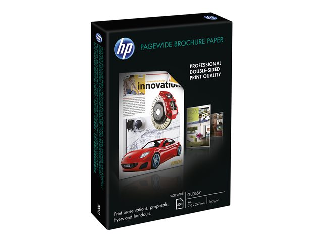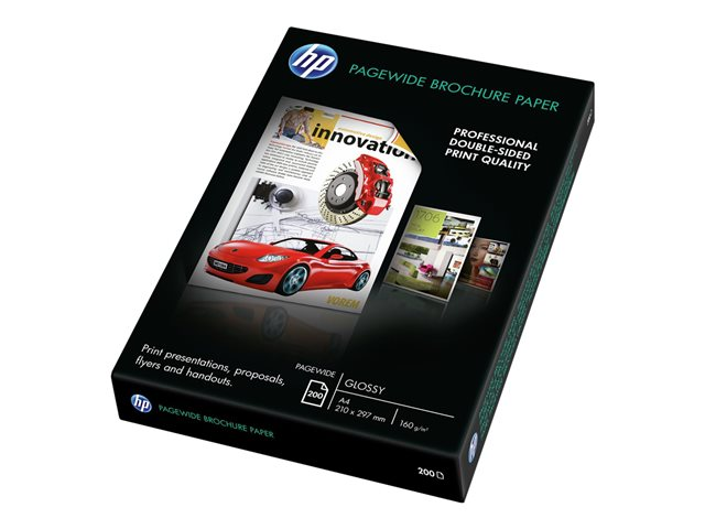 Produktbeskrivning HP - broschyrpapper - blank - 200 ark - A4 - 160 g/m² Typ av produkt Broschyrpapper Ytbeläggning Blank Mediastorlek A4 (210 x 297 mm) Utskriftsteknik Bläckstråle, laser Medievikt 160 g/m² Mediefärger Ljust vit Medföljande antal 200 ark Tillverkarens garanti 90 dagars garanti Kompatibel med PageWide Color 755, MFP 774, MFP 779; PageWide Managed P75050, P77740, P77750, P77760; PageWide Managed Color MFP E77650, MFP E77660; PageWide Managed Color Flow MFP E77650, MFP E77660; PageWide Pro 750, 772, 777 - Nedladdningsbara filer