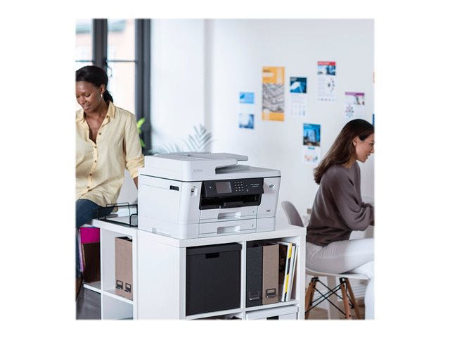 Produktbeskrivning Brother MFC-J6940DW - multifunktionsskrivare - färg Typ av enhet Multifunktionsskrivare Faxtyp Super G3 - vanligt papper Utskriftsteknik Bläckstråle (färg) Bläckstråleteknik 4-färgs Rekommenderad månatlig volym 2500 sidor Max kopieringshastighet Upp till 25 sidor/minut (mono)/upp till 16 sidor/minut (färg) Max kopieringsupplösning Upp till 600 x 600 dpi (mono)/upp till 600 x 600 dpi (färg) Maximal kopieringsupplösningsklass Upp till 600 x 600 dpi (mono)/upp till 600 x 600 dpi (färg) Max utskriftshastighet Upp till 28 sidor/minut (mono)/upp till 28 sidor/minut (färg) Max utskriftsupplösning Upp till 1200 x 4800 dpi (mono)/upp till 1200 x 4800 dpi (färg) Maximal utskriftsupplösningsklass Upp till 1200 x 4800 dpi (mono)/upp till 1200 x 4800 dpi (färg) Max faxöverföringshastighet 33.6 Kbps Skanning 1200 x 2400 dpi Originaltyp Ark Dokumentmatarens kapacitet 50 ark Mediastorlek A3 (297 x 420 mm)/ANSI B (Ledger) (279 x 432 mm) (max) Mediatyp Vanligt papper, glansigt papper, returpapper Standard mediekapacitet 600 ark Kapacitet hos förbikopplande dokumentmatare 100 ark Utmatningsfackens kapacitet 100 ark Automatisk duplex Ja (kopiering) Ja (utskrift) Anslutningsmöjlighet Ja Gränssnitt USB 2.0, LAN, Wi-Fi(n), USB 2.0-värd, NFC AirPrint-aktiverad Ja Kontorsmaskinfunktioner Skanna till bild, skanna till OCR, skanna till nätverk, skanna till FTP, skanna till e-post, skanna till e-postserver, skanna till SharePoint, skanna till PDF Dimensioner (BxDxH) 57.6 cm x 47.7 cm x 37.5 cm Vikt 23.3 kg Tillverkarens garanti 1 års garanti - Tillbehör