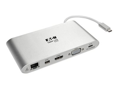 Eaton Tripp Lite Series USB C Docking Station 4K USB Hub USB 3.1 Gen 1 w/ USB-A, HDMI, VGA, mDP, Gigabit Ethernet, Mem Card, 3.5 mm & USB-C Charge 4K @ 30Hz, USB-C, USB Type C, USB Type-C