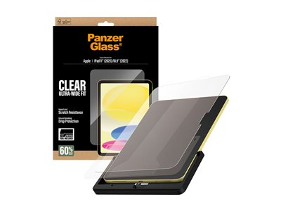 Produktbeskrivning PanzerGlass - skärmskydd för surfplatta - ultra-bred passform, med FASTFIT-verktyg Typ av produkt Skärmskydd - glas Avsedd för Surfplatta Skydd Reptålig, stöttålig, droppskydd, stötsäkert, klåfingerskydd, motstår fingeravtryck, oljeavvisande, vattenavstötande, smutsresistent, stötskydd Beläggning Oleofob Förpacknings innehåll Skärmskydd, justeringsverktyg Produktmaterial PET (Polyethylene Terephthalate), härdat glas (super+) Dimensioner (BxDxH) 17.351 cm Längd 24.264 cm Grovlek 0.45 mm Vikt 52 g Färg Klar Designat för Apple 10.9-inch iPad (10:e generation); iPad (A16) - Nedladdningsbara filer