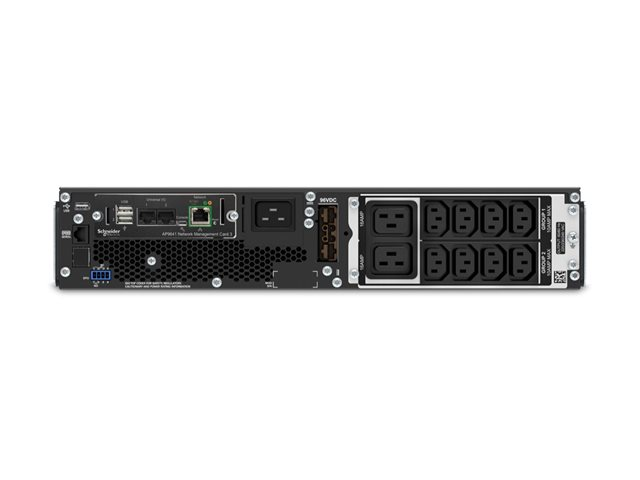 Produktbeskrivning APC Smart-UPS SRT 3000VA RM - UPS - 2700 Watt - 3000 VA - Bly-syra - med APC UPS kort för nätverkshantering AP9641 Typ av enhet UPS - rackmonterbar/extern Stativstorlek 2U Vikt 31.3 kg Inspänning AC 220/230/240 V Utspänning AC 220/230/240 V Effektkapacitet 2700 Watt / 3000 VA Inmatningsanslutningar 1 x ström IEC 60320 C20 Utdatakontakter 8 x power IEC 60320 C13